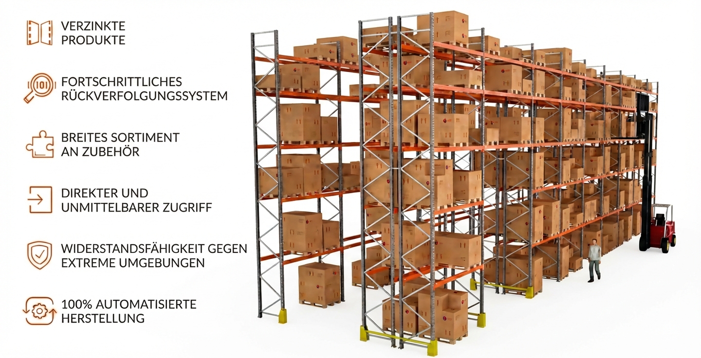 Benötigen Sie eine professionelle Lagereinrichtung für schwere Lasten? Palettenregale sind die optimale Lösung für eine effiziente, sichere und platzsparende Lagerung von Palettenwaren. Ob für Industrie, Logistik oder Handel – mit einem hochwertigen Palettenregal optimieren Sie Ihre Lagerfläche und beschleunigen Ihre Arbeitsprozesse. Bei Master Regale finden Sie eine große Auswahl an Regalsystemen für Paletten, inklusive Schwerlastregale für Paletten sowie umfangreiches Zubehör für Palettenregale.