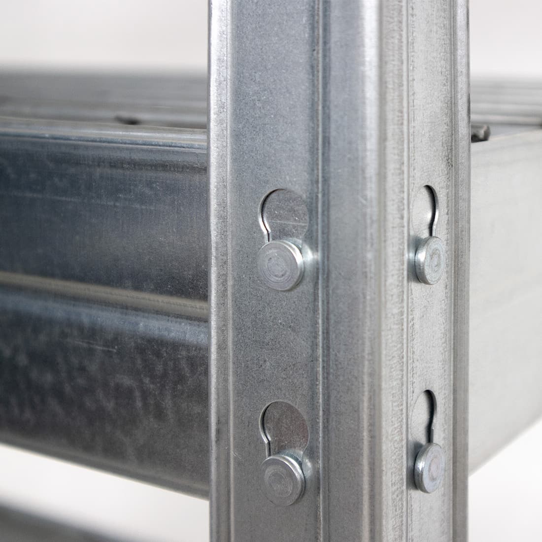 Schraubenloses Vollmetallregal RIVET 180x150x60 cm (HxBxT) mit 4 Drahtböden mit Zinkoberfläche ist eine echte Revolution in der Lagerindustrie. Das neue Rivet-Montagesystem, das Nieten verwendet, sorgt für ein sehr hohes Maß an Stabilität und eine feste Steckkonstruktion des schraubenlosen Metallregals mit Drahtboden. Die Montage ist einfach und schnell. Die Drahtböden aus Metall sind aus hochwertigem Stahl gefertigt und verzinkt.