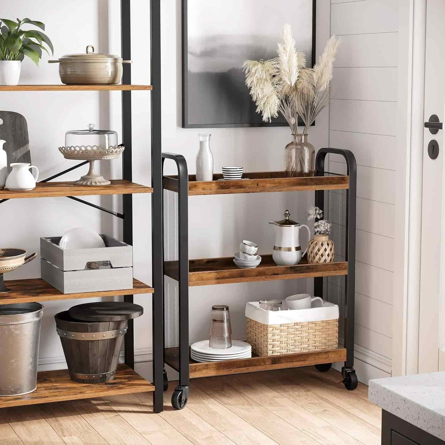 - Schmale Schränke in Ecken: Raumecken sind oft ungenutzt. Ein schmaler Schrank für Besen, Staubsauger oder Vorräte kann hier wahre Wunder wirken. Auch ein Servierwagen kann ein wahres Raumwunder sein - besonders für sehr kleine Räume!