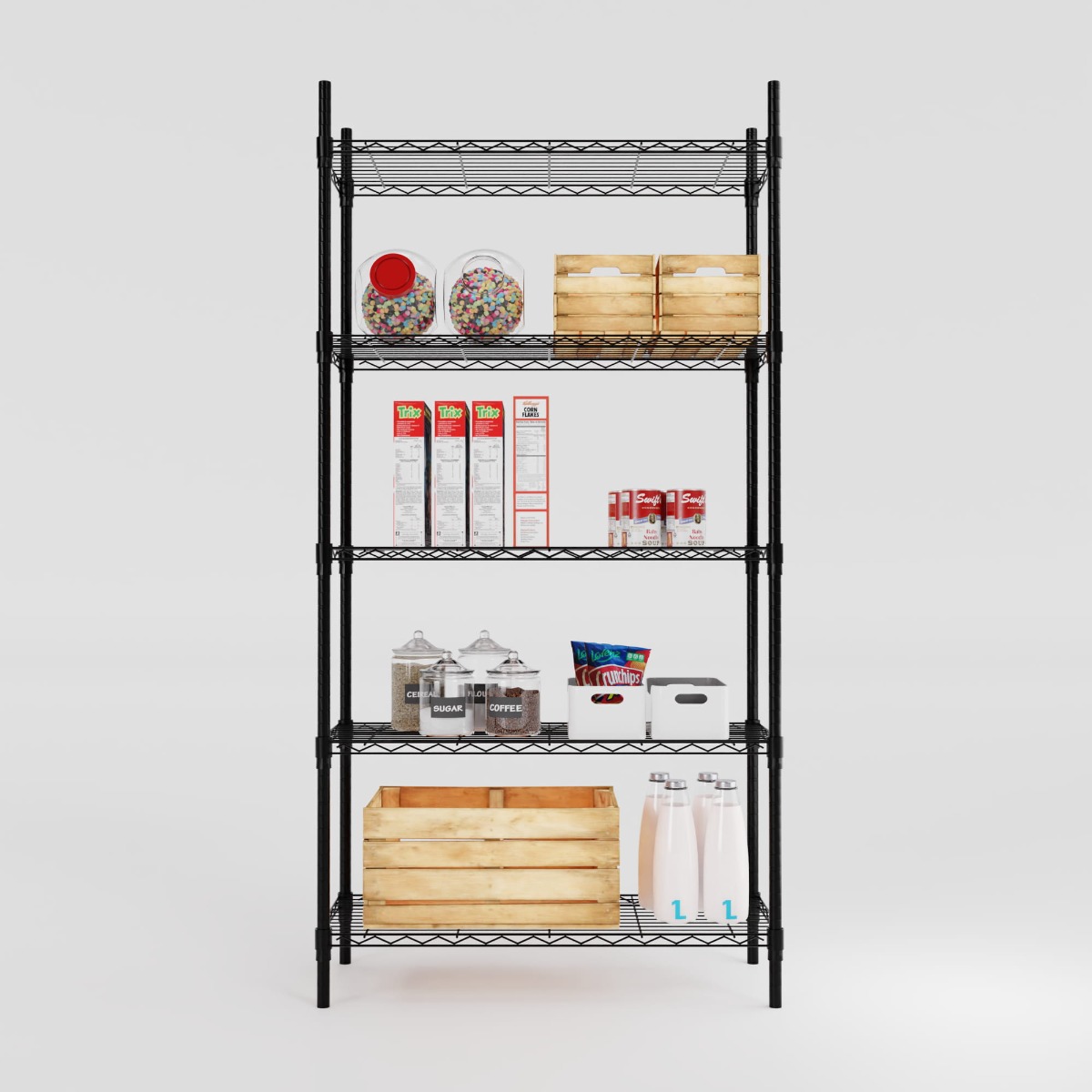 Entdecken Sie unser vielseitiges Gitterregal - die perfekte Lösung für die Organisation in Ihrem Zuhause! Mit großzügigen Abmessungen von 181x90x35 cm (HxBxT) und einem belastbaren Design bietet dieses pulverbeschichtete Metallregal eine zuverlässige Aufbewahrungsmöglichkeit für Ihre Garage, Ihren Keller oder Ihre Speisekammer.