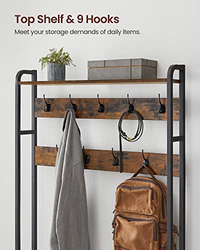 Bringen Sie Ordnung und Stil in Ihren Eingangsbereich mit unserem multifunktionalen Garderobenständer, der nicht nur Platz für Ihre Kleidung bietet, sondern auch einen Schuhschrank und eine bequeme Sitzbank integriert. So verstauen Sie Schuhe, Schals und Jacken im Handumdrehen.