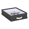 Die OSKAR Dokumentenbox ist nicht nur praktisch, sondern auch stilvoll. Hergestellt aus laminieren Karton, ist sie formstabil und langlebig. Ob Dokumente, Fotos oder andere persönliche Dinge - die Dokumentenbox für den Schreibtisch bietet genug Platz und schützt vor Staub. In den Versionen Dunkelgrau und Hellgrau erhältlich, verfügt sie über einen Etikettenhalter an der Frontseite, um den Inhalt zu kennzeichnen. Wenn mehrere der Dokumentenboxen gestapelt werden, erleichtert dies das Auffinden bestimmter Utensilien und Accessoires!