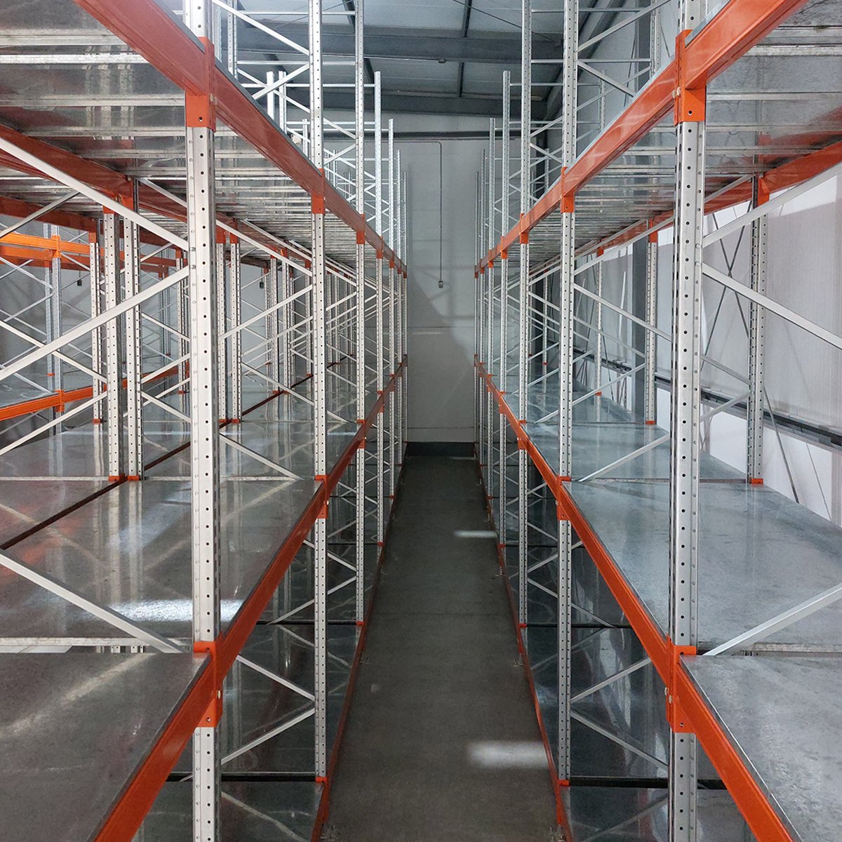 Verzinkte Stütze. Die Stütze ist das wesentliche Element des Rahmens und deshalb verzinkt. Dem Kunden stehen eine große Zahl von Querschnitten und Längen von Stützen dieses Regalsystems zur Auswahl.