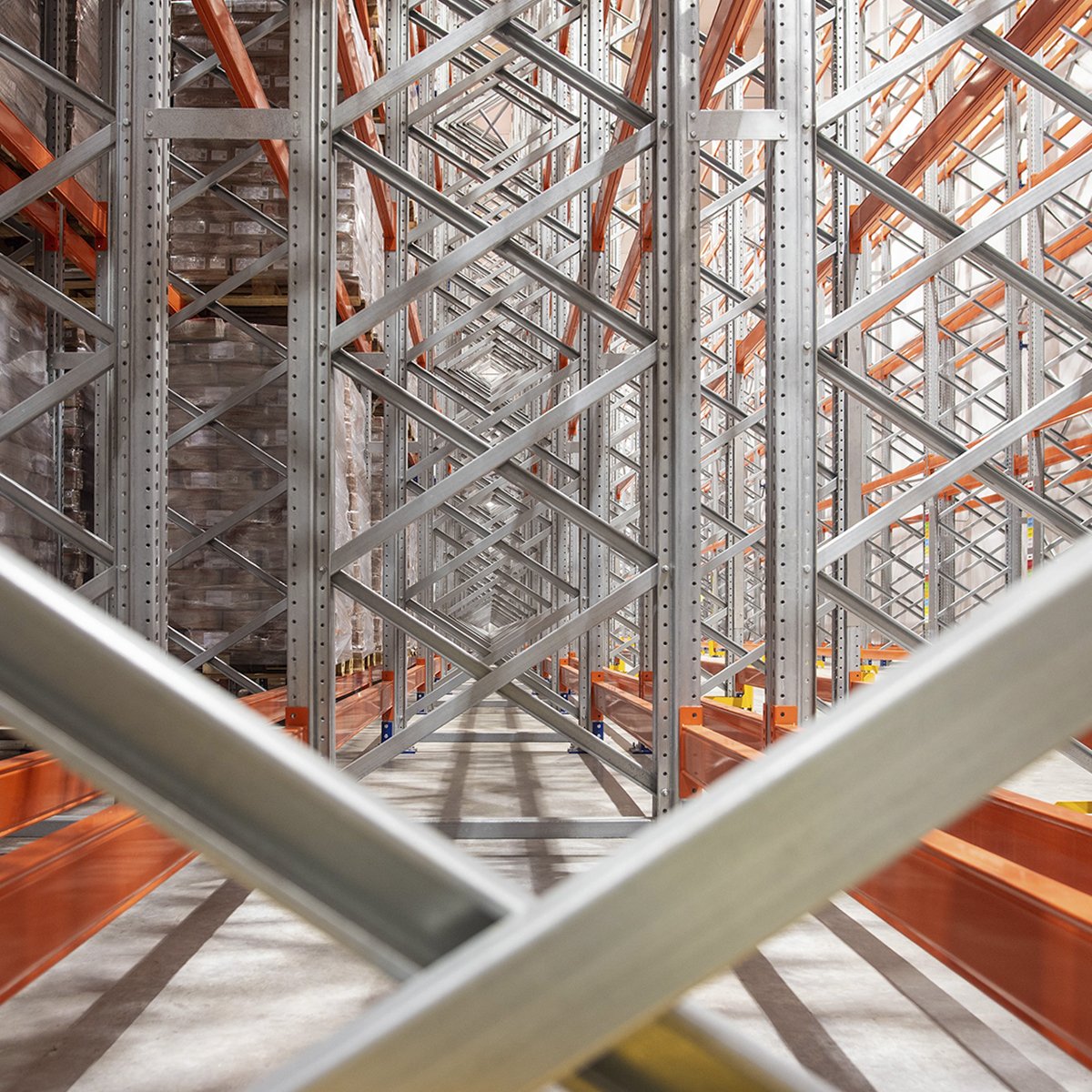 Dank seines durchdachten Aufbaus ermöglicht dieses Palettenregal den direkten Zugriff auf jede Palette, was den Warenumschlag deutlich beschleunigt.
