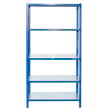 Das Steckregal hat eine hohe Tragkraft, 180 kg je Boden. Die Gesamttragkraft beträgt bis zu 900 kg. Das Steckregal hat blaue Winkelprofile und Traversen. Die verzinkten Böden sind widerstandsfähig gegen Korrosion und mechanische Beanspruchung. Das Produkt kann an der Wand verdübelt und verschraubt werden.