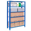 Das Steckregal hat eine Tragkraft von 180 kg je Boden. Die Gesamttragkraft beträgt bis zu 1080 kg. Eine Ebene besteht aus zwei Metallböden mit 60 cm Breite. Das Regal ist in einzigartiger attraktiver Farbe erhältlich, die Winkelprofile und Traversen sind blau. Die verzinkten Böden sind widerstandsfähig gegen Korrosion und mechanische Beanspruchung. Das Steckregal gehört zu den schönsten, denn die Lochprofile befinden sich an der inneren Seite der Winkelprofile. Das Produkt hat eine einfache Wartung und ist für anspruchsvolle Kunden geeignet. Das Regalsystem kann an der Wand zu verschraubt werden.